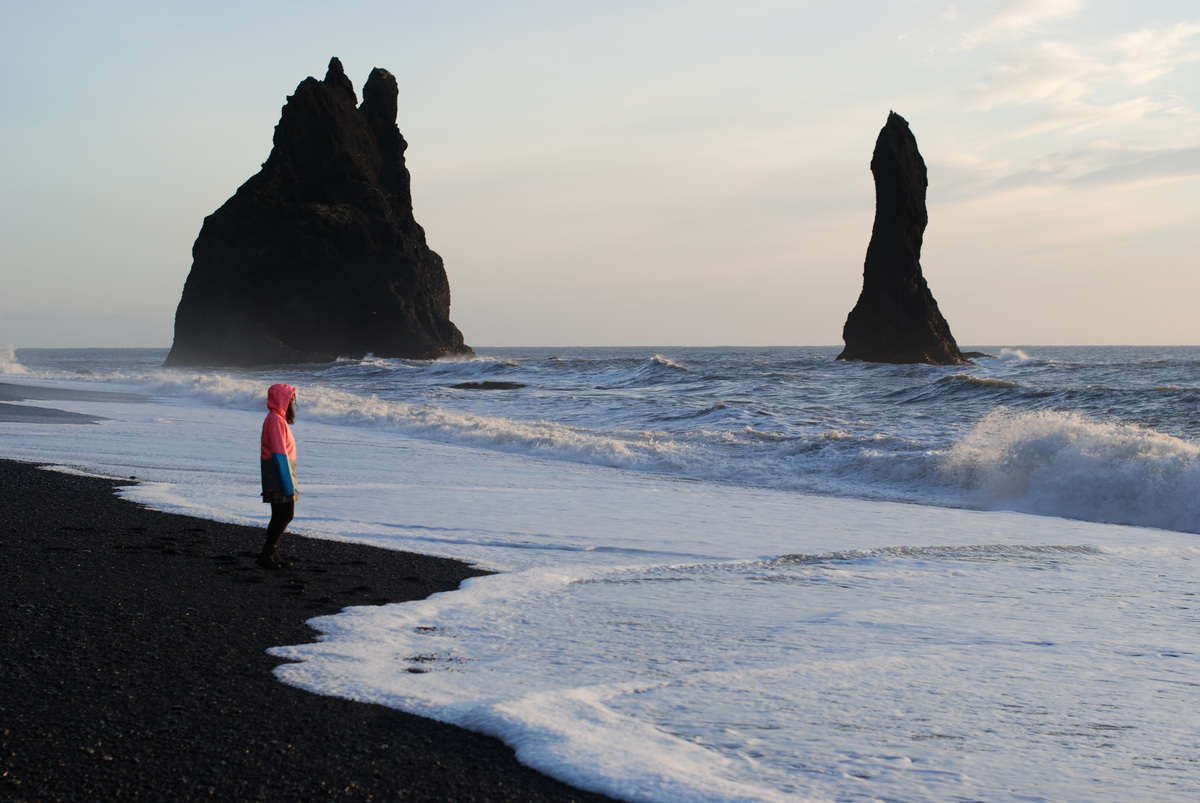 Wenwens Spiel mit den Wellen an einem schwarzen Strand. Am Ende siegten die Wellen doch.